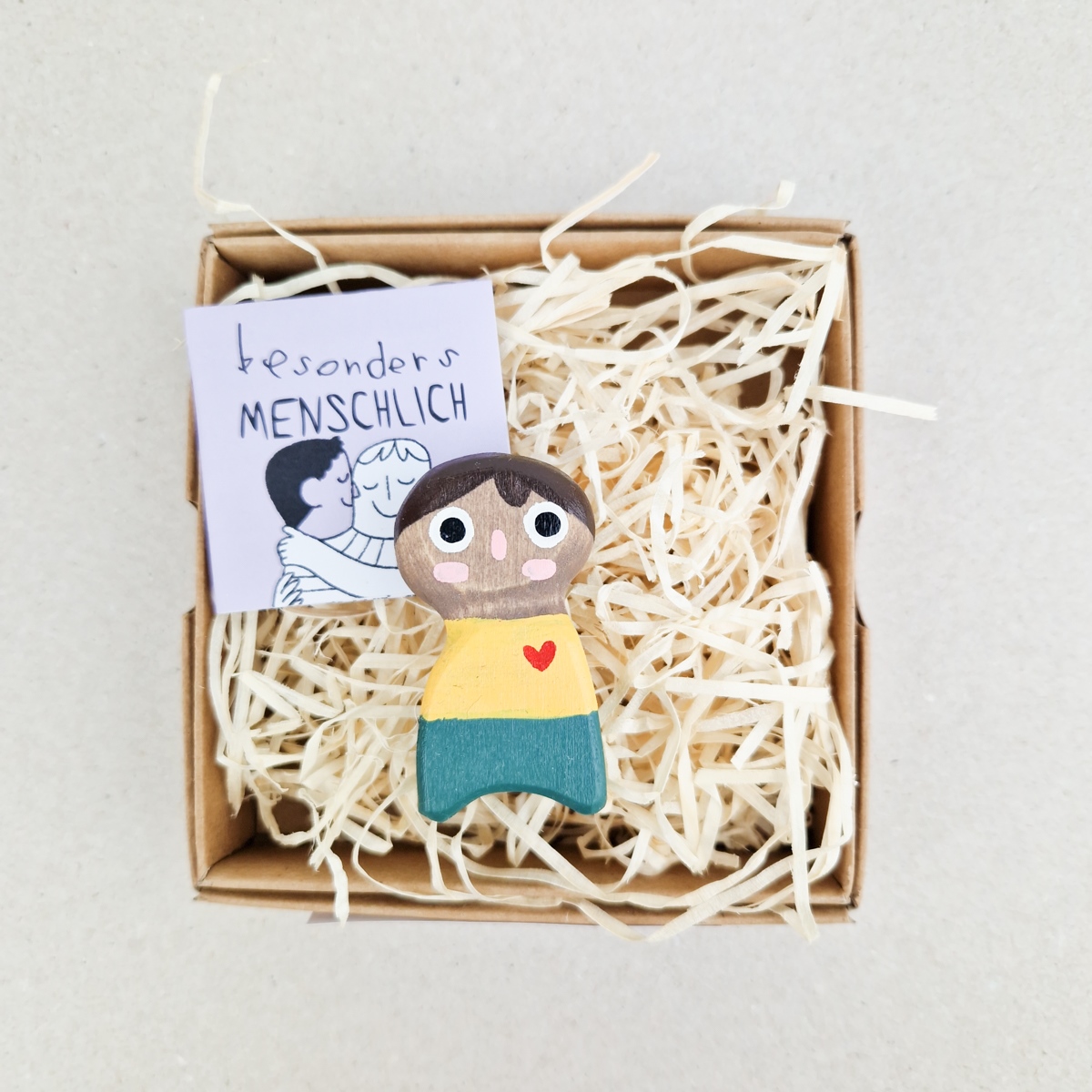 Die Braune Menschenfigur aus unserer inklusiven und besonders menschlichen Holzfiguren-Reihe lädt Kinder zu freiem Spielen und fantasievollen Geschichten ein. Durch ihr neutrales Design kann die Figur einfach Mensch sein, ganz ohne vorgegebene Rollenbilder. Mal fröhlich, mal traurig – ganz wie es sich im Spiel ergibt. Die Figuren können auch gestapelt werden und lassen sich toll mit unseren Holztieren kombinieren. Beim Kauf einer Holz-Menschenfigur wird 1€ an den Verein „Rettet das Kind“ gespendet.