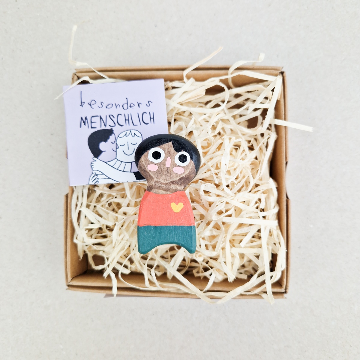 Die Schwarze Menschenfigur aus unserer inklusiven und besonders menschlichen Holzfiguren-Reihe lädt Kinder zu freiem Spielen und fantasievollen Geschichten ein. Durch ihr neutrales Design kann die Figur einfach Mensch sein, ganz ohne vorgegebene Rollenbilder. Mal fröhlich, mal traurig – ganz wie es sich im Spiel ergibt. Die Figuren können auch gestapelt werden und lassen sich toll mit unseren Holztieren kombinieren. Beim Kauf einer Holz-Menschenfigur wird 1€ an den Verein „Rettet das Kind“ gespendet.