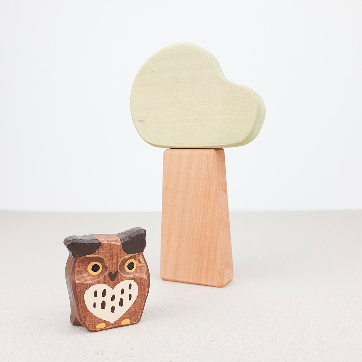 Der besonders weise Uhu im Set mit einem Baum. Kann gestapelt und natürlich auch ganz frei bespielt werden. Für dieses Set wird € 1,- an den Naturschutzbund Österreich gespendet. Danke, dass du hilfst!